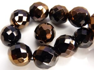 0010436 Jet half Bronze Czech Glass Facet Firepolish 14 mm 3 stuks