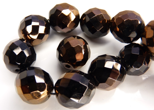 FP1-14-23980-14235 Jet half Bronze Czech Glass Facet Firepolish 14 mm
