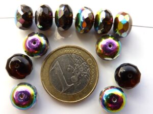 Jet Vitrail rondelle geslepen schijfje, firepolished.