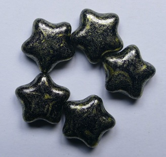 0010556 Jet Gold Touched Star Glass Bead 12 mm 15 Pc.
