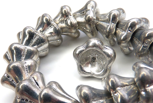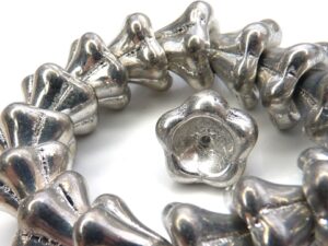0020091 Full Silver kelkvormige bloem. 13 x 11 mm. 9 stuks