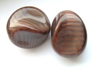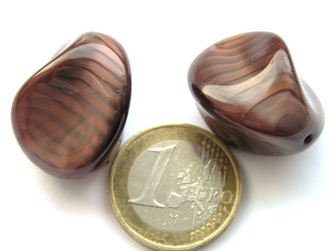 Prachtige grote bruin gemeleerde kralen.