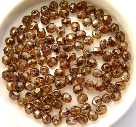 0030221 Transparent Goldish Smoke Topaz Luster Czech Glass Facet Firepolish 4mm 50 stuks