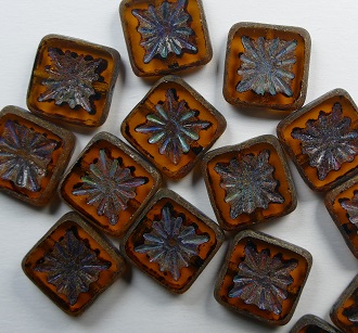 0030363 Matte Dark Topaz Travertin Squared Kiwi Table Cut Bead. 6 Pc.