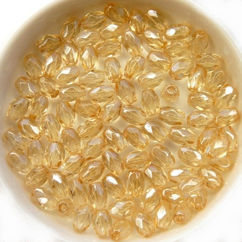 Crystal Champagne Lustered Oval Facet, Firepolished glass Beads.