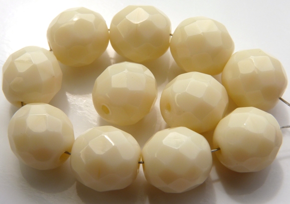 FP1-10-83529 Light Ivory Czech Glass Facet Firepolish 10mm