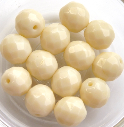0040235 Light Ivory Czech Glass Facet Firepolish 10mm 10 stuks
