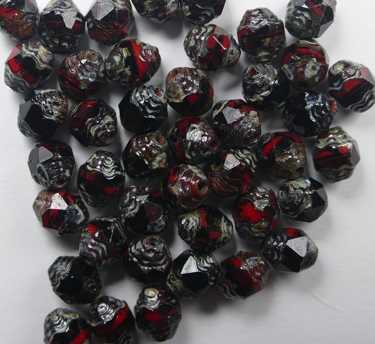 0050290 Jet/Red Picasso Antique Style Cathedral Beads 10 Pc.