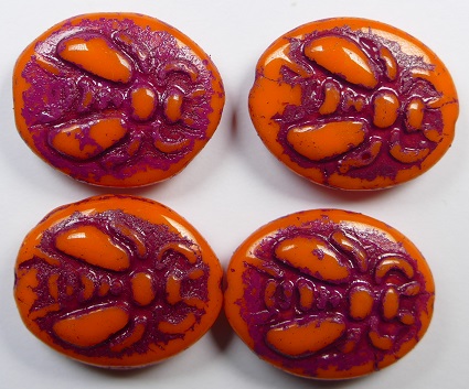 0060139 Opaque Orange Garnet Washed Bee Beads kralen 3 Pc.