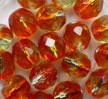 Silver Lined Mix Orange-Green Czech Glass Facet Firepolish 8 mm