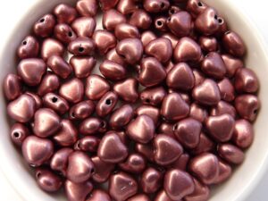 Matte Metallic Pink/Copper Heart Druk Glass Bead. Hart vormige glaskralen
