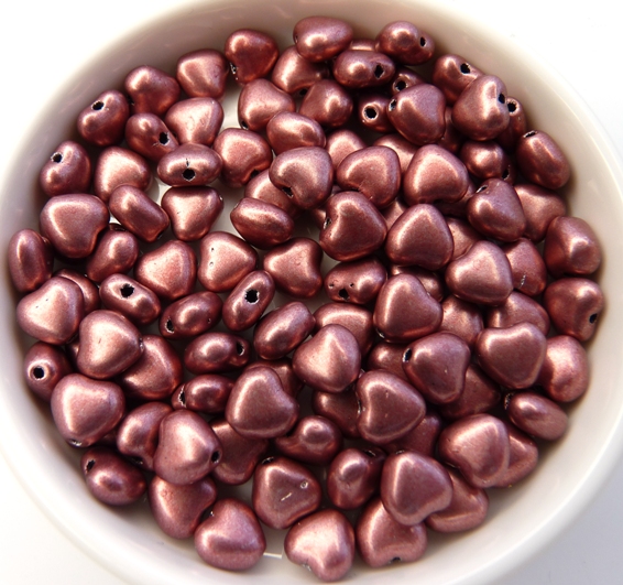 Matte Metallic Pink/Copper Heart Druk Glass Bead. Hart vormige glaskralen