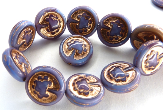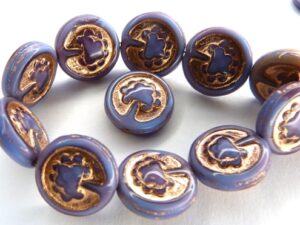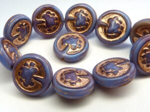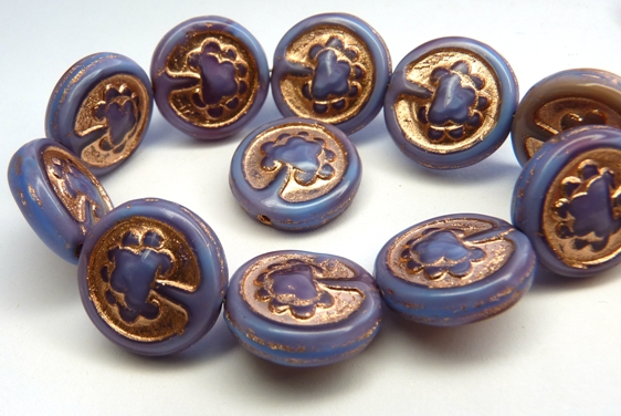 Blue Raspberry Swirl, Copper decor Live, Tree, round flat glass bead.