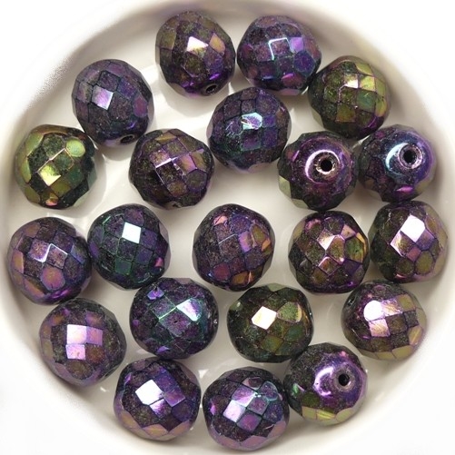 0080694 Jet Iris Purple Czech Glass Facet Firepolish 10mm 10 stuks