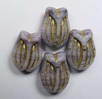 0080709 Tulip Bead Matte Light Amethyst Purple Melee Gold Striped kleur 4 Pc.