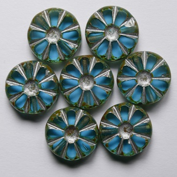 0090531 Aquamarine Travertin Silver Washed Table Cut Sunflower Bead 5 Pc.