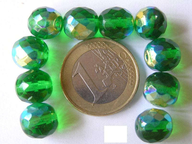Mooie grote Tsjechische glaskralen, groen facet geslepen met AB glans