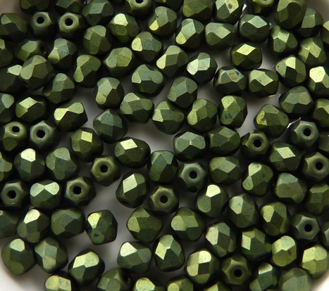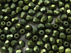 FP1-04-23980-84100-14495 Jet Matte Green Metallic Czech Glass Facet Firepolish 4mm