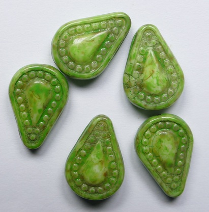 0100649 White Alabaster Travertin Green Stone Filigree Teardrop Glass bead 14×10 mm 8 Pc.