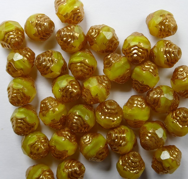 Yellow Coral Bronze Antique Style Cathedral Facet Geslepen, Firepolished