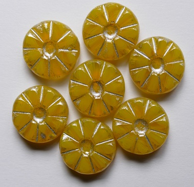 Yellow Opal Silver Grey Washed Table Cut Sunflower Bead