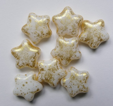 White Alabaster Gold Splash Star Glass Bead 12 mm, stervormige glaskralen.