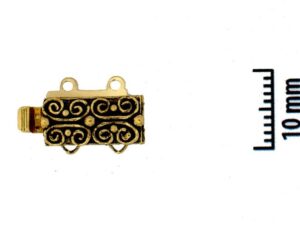 Clasp with springtongue mechanism and ornament, 23 Krt. Real Gold Old Plated.