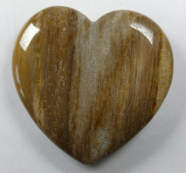 Mooie platte hartvormige cabochon van Versteend Hout