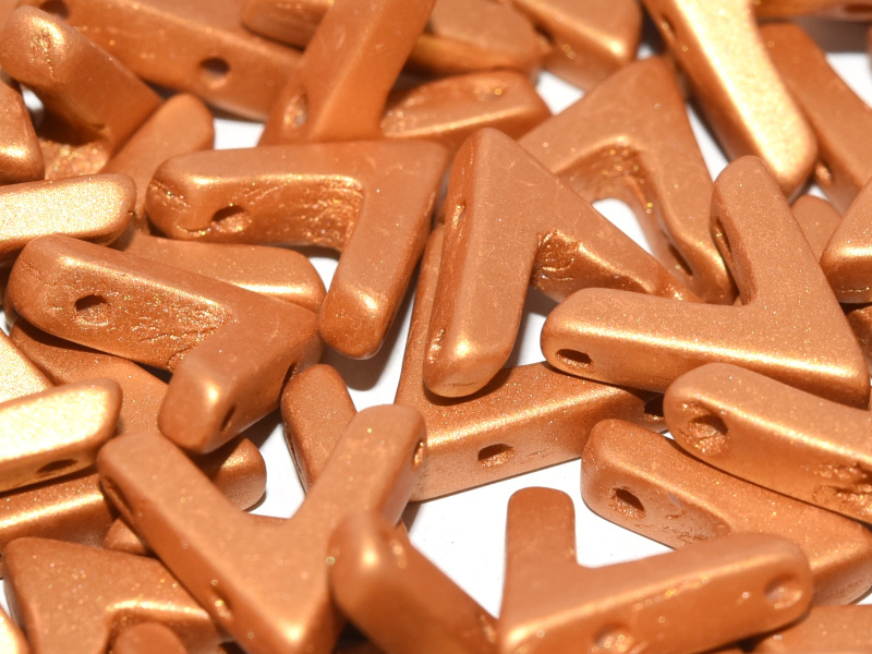 Alabaster Metallic Gold AVA® Bead : Een V-vormige glaskraal met drie gaatjes, één in de punt en één in iedere arm van de V-vorm. De AVA Bead is ontworpen door de Nederlandse Gianna Zimmerman en worden met de hand geperst vanwege de unieke delicate vorm.
