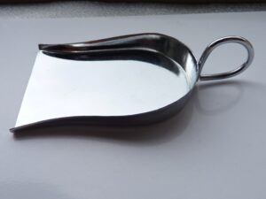 Small metal shovel with handle, that is great for scooping up loose stones, beads and small parts.