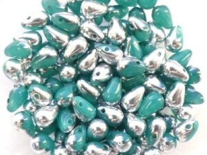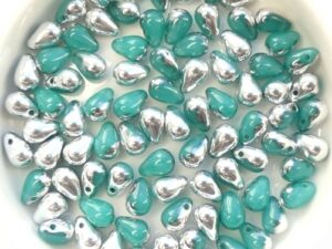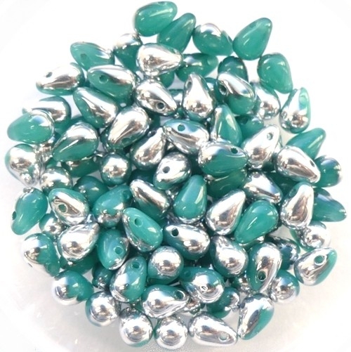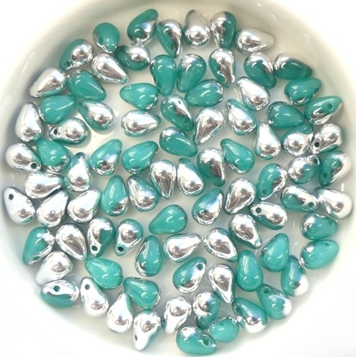 CD-61100-27001 6×4 mm Opal Green Aqua Half Silver Czech Drops 40 Pc.