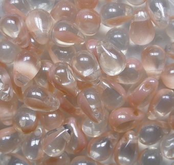 CD-6×4-76028-14400 Moonshine Pink Luster Czech Glass Drops, het gaatje zit bovendoor.