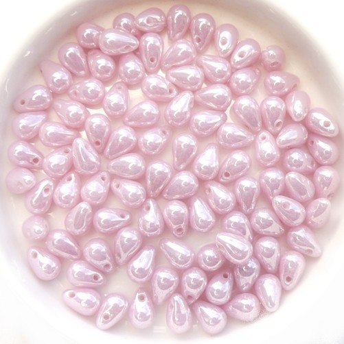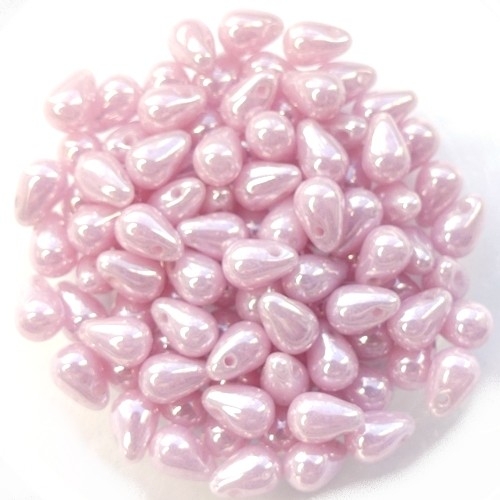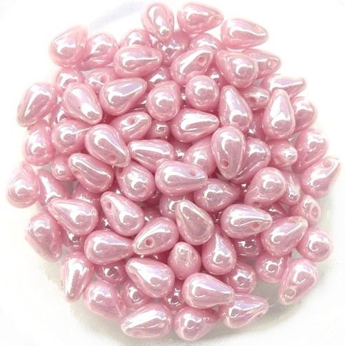 CD-72000-14400 6×4 mm Lustered Milky Pink Czech Drops 40 Pc.