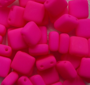 CMT-25123AL Neon Pink Czech Mates 2 hole Tile 25 Pc.