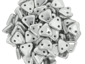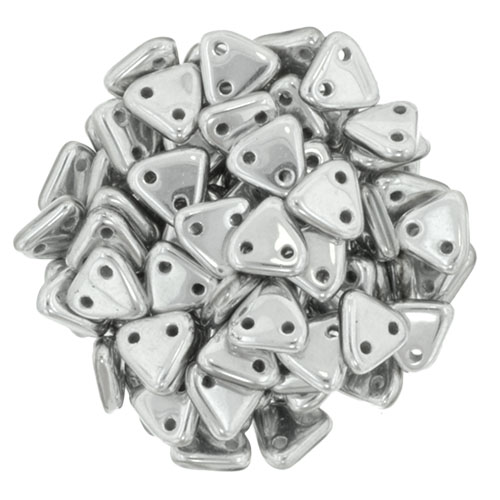 CzechMates Triangle Matte Metallic Silver, driehoekige kraaltjes met 2 gaatjes aan één kant.