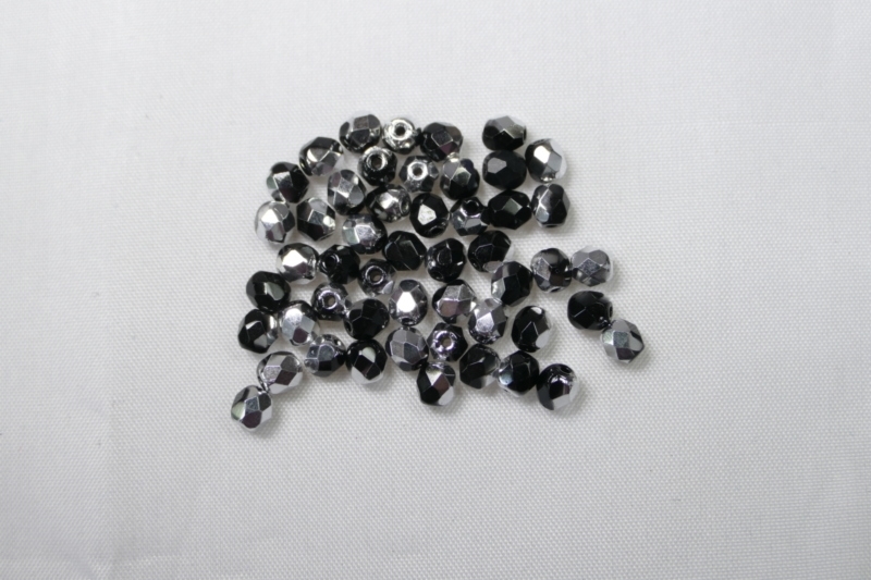 FP1-04-23980S Silver 1/2 Coated Jet Czech Glass Facet Firepolish 4mm 50 stuks