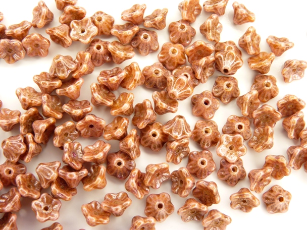 White Alabaster met Red Brown Travertin Flower Cup Beads.