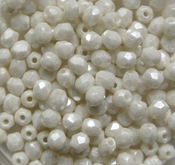FP1-03-02010L White Alabaster Luster Czech Glass Facet Firepolish 3 mm 50 stuks