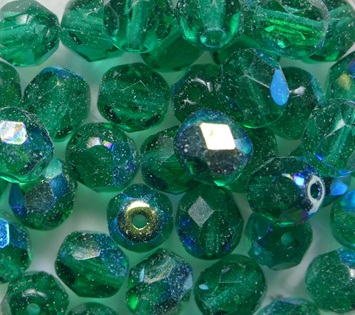 FP1-06-50720X Emerald AB Czech Glass Facet Firepolish 6 mm