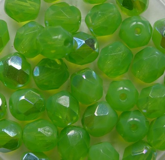 FP1-06-51010X Opal Green AB Czech Glass Facet Firepolish 6 mm