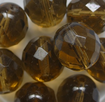 FP1-12-10220 Smoked Topaz Czech Glass Facet Firepolish 12mm