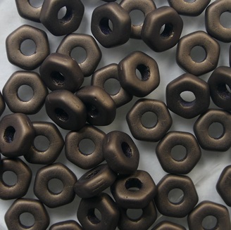 HN-23980-84100-14415 Matte Jet Bronze Hex Nut Beads 5×2 mm, 10 gram