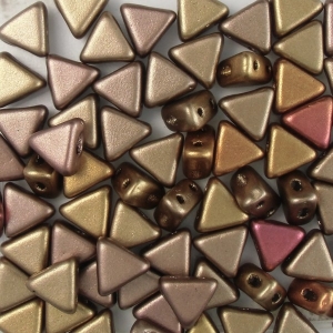 Een driehoekige vorm met 2 gaatjes door de lengte van de kraal waardoor er veel mogelijkheden zijn.