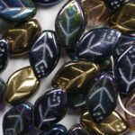 Heavy Metals Mix Druk Glass Beads Leaves, het gaatje zit bovendoor.