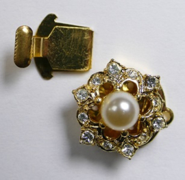 Deze prachtige goudkleurige sluiting van Tsjechische makelij met mooie Preciosa parel en kristalletjes is de perfecte finishing touch voor jouw mooie sieraad.
