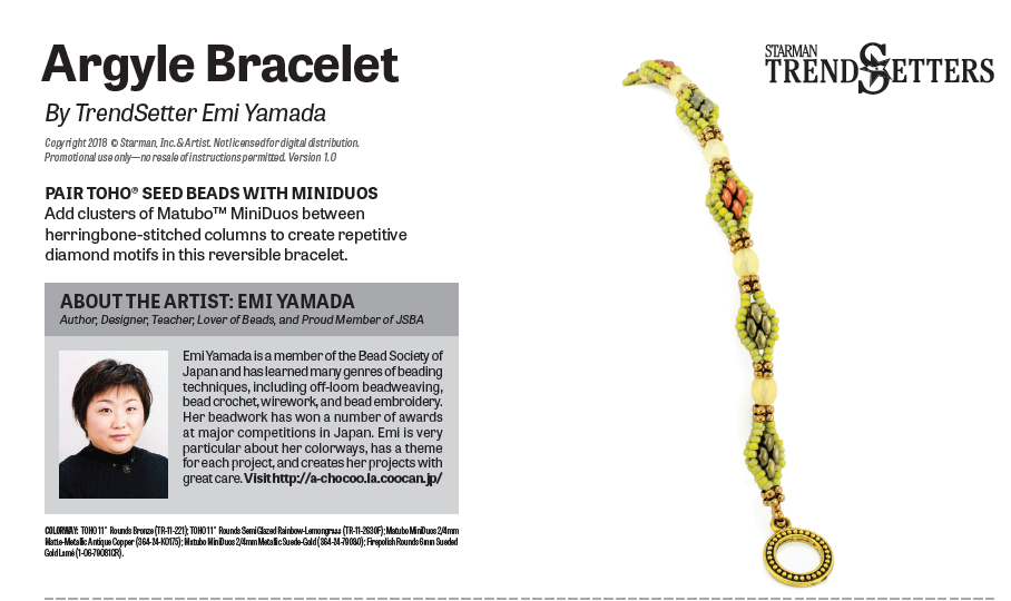 M Argyle Bracelet By Emi Yamada Free Pattern bij aankoop van Matubo MiniDuo’s of Toho 11/0
