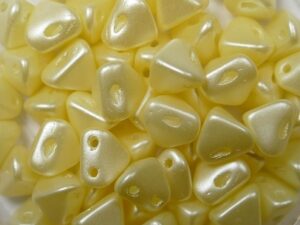 Een driehoekige piramidevorm met 2 gaatjes in de hoogte door de kraal waardoor er veel mogelijkheden zijn.