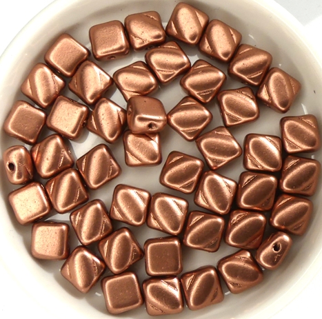Crystal Silky Bronze Copper, Vierkante kralen met 2 diagonale gaatjes.