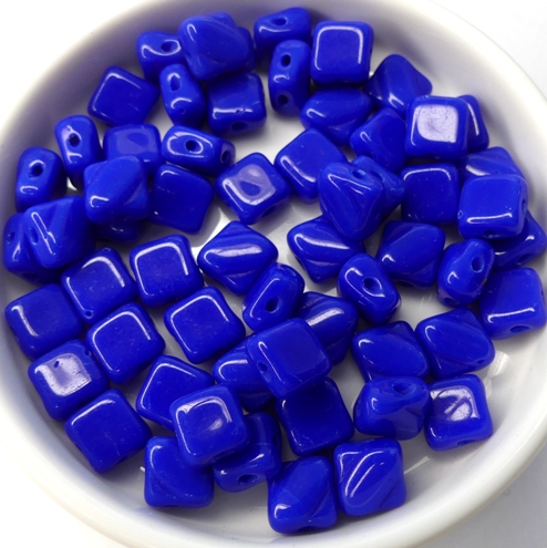 Opaque Royal Blue, Vierkante kralen met 2 diagonale gaatjes.