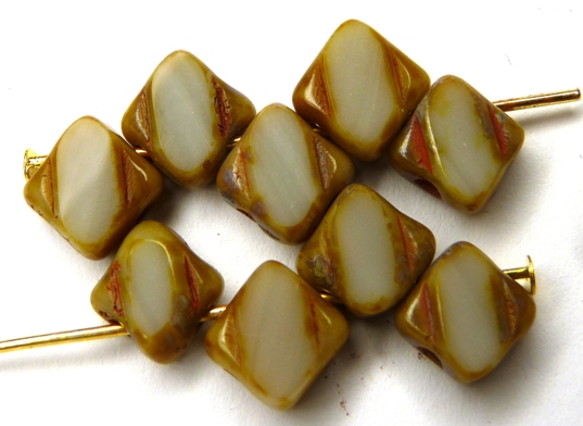 Opaque Grey Travertin, Table Cut Silky Beads, Plat geslepen Vierkante kralen met 2 diagonale gaatjes.